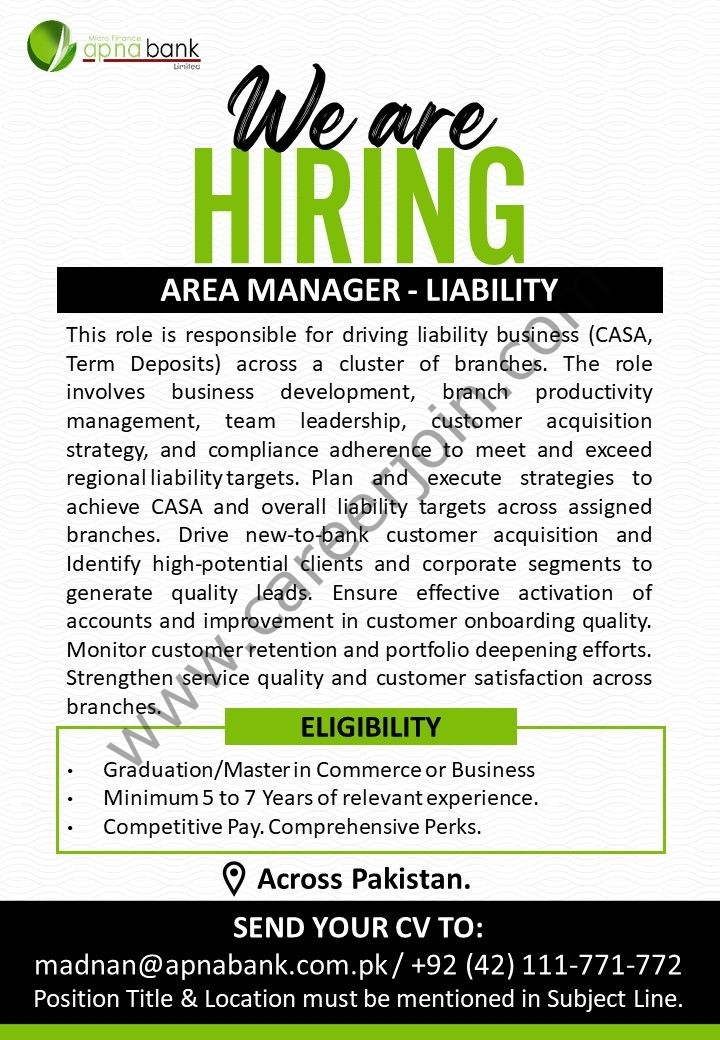 Apna Micro Finance Bank Limited Jobs Area Manager Liability