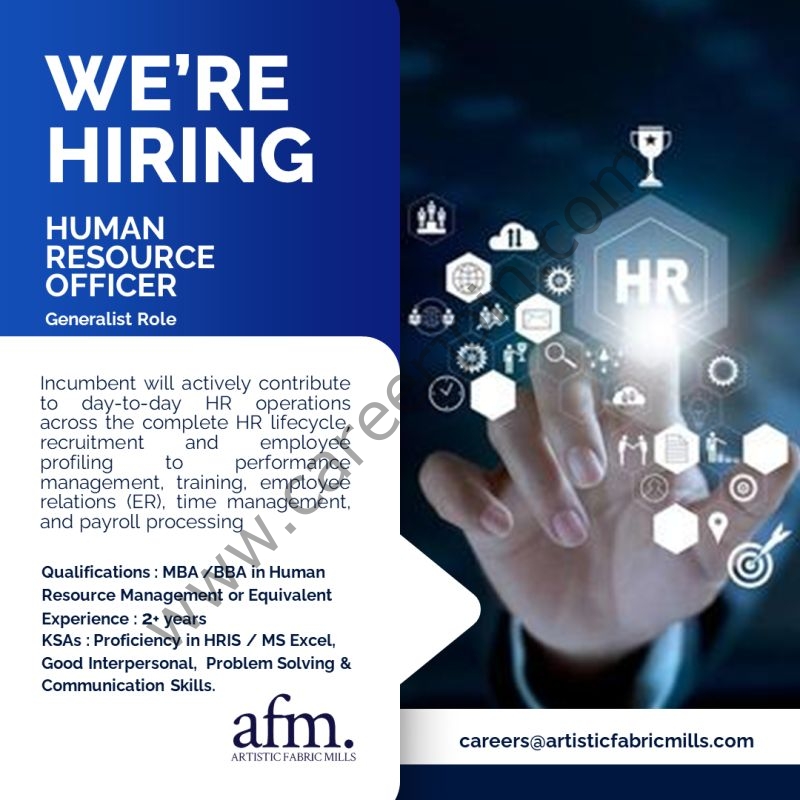 Artistic Fabric Mills (Karachi) is looking for “Human Resource Officer – Generalist Role.”