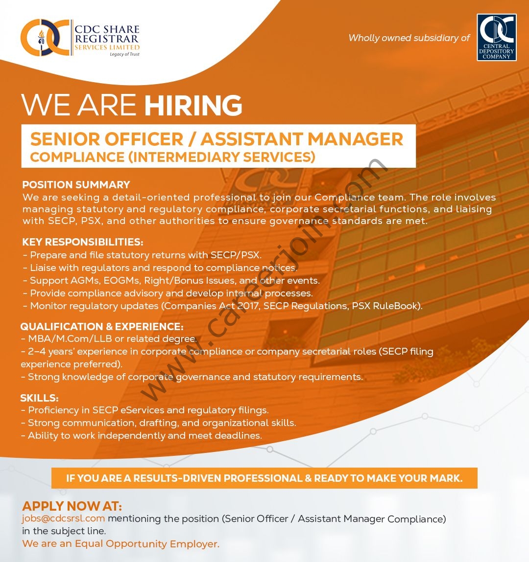 Central Depository Company of Pakistan Limited Jobs Senior Officer / Assistant Manager Compliance :