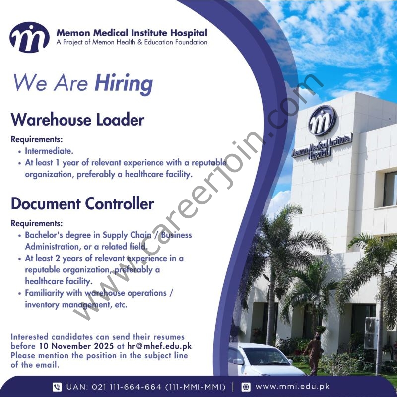 Memon Medical Institute Hospital MMI Jobs November 2025 :