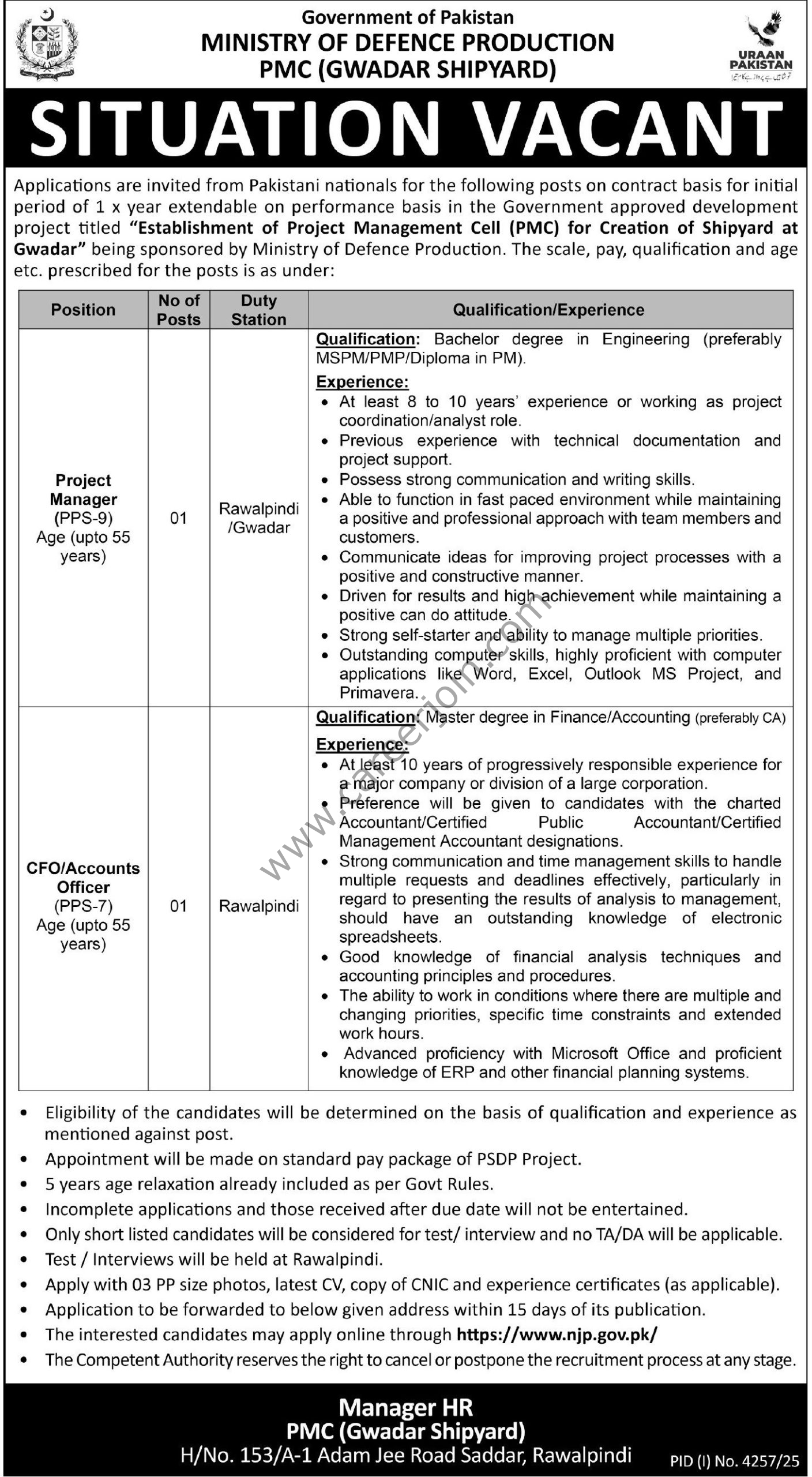 Job Location:  Rawalpindi, Gwadar