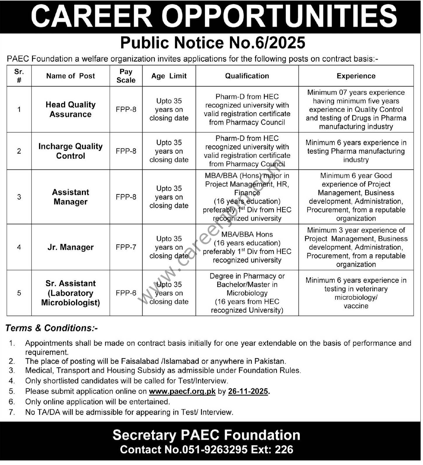 PAEC Foundation Jobs November 2025
