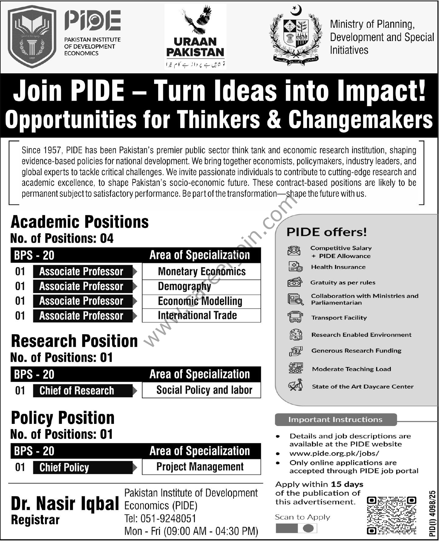 Pakistan Institute of Development Economics PIDE Jobs November 2025
