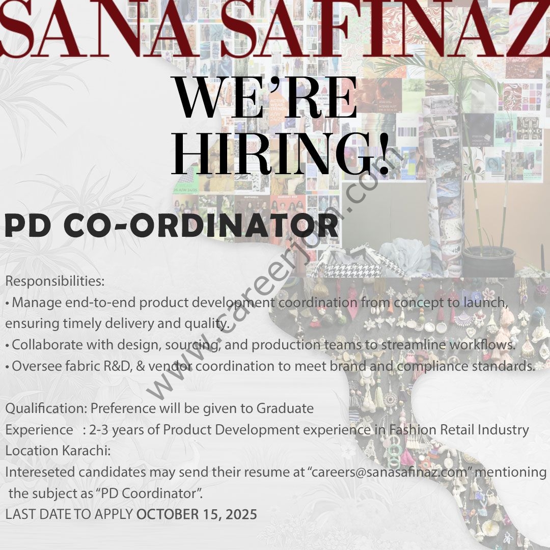 Sana Safinaz Jobs PD Coordinator
