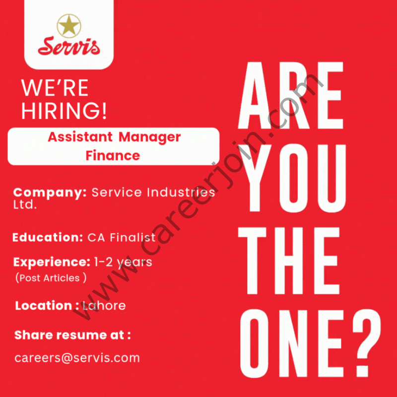 Service Industries Limited is looking to hire Assistant Manager Finance.